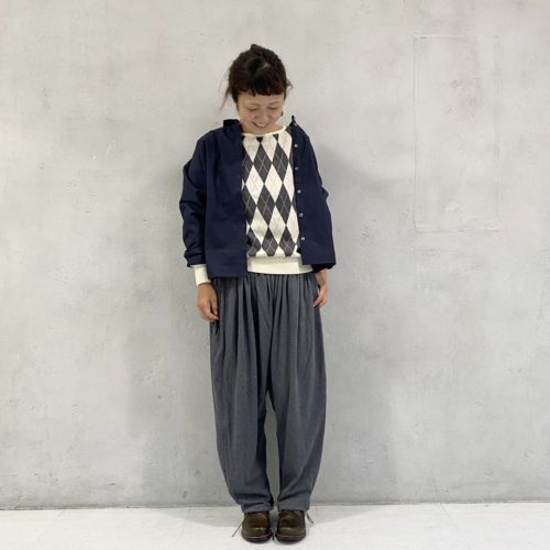 ボトムスはワイドもテーパードもなんでもいけます。