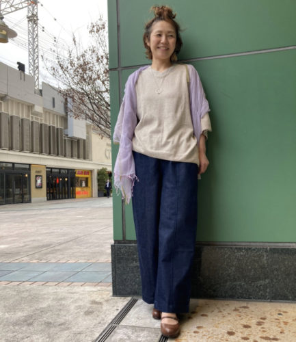 ワイドデニムがこなれ感を演出。