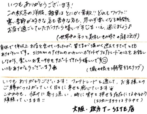 シサムコウボウ・vote for 全9店舗のスタッフから