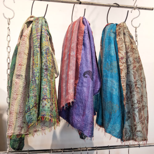 リサイクルサリーに刺し子を施したカンタスカーフは