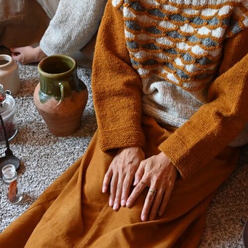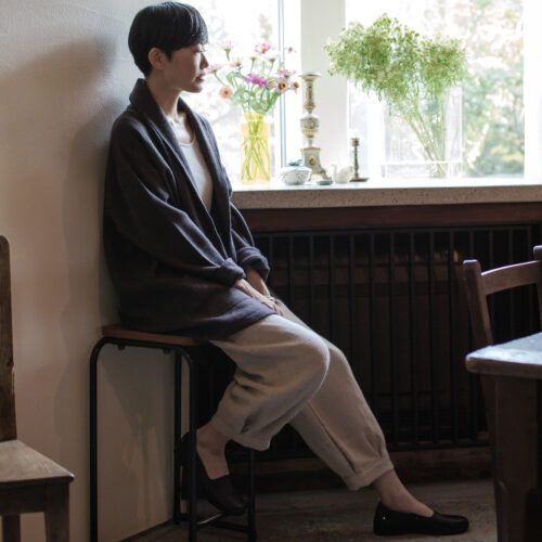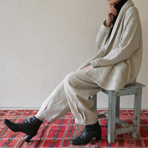 手織メリノショールカラーコート/手織メリノコクーンパンツ