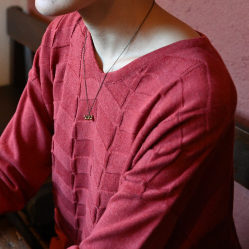 ぽこぽことした編地と色使いが愉しいニットセーター。