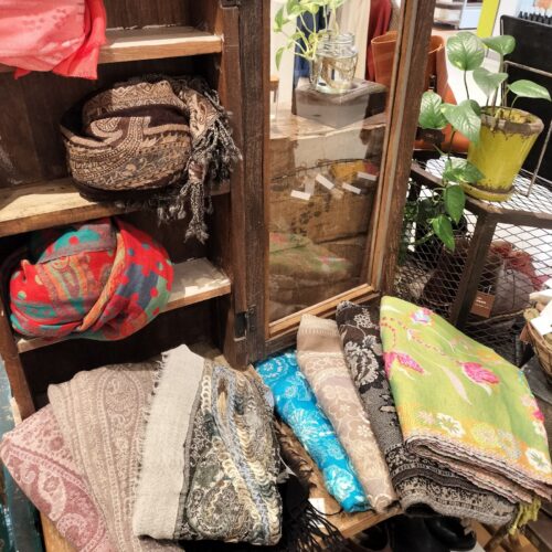 ウールのニット服や、手織り・手刺繍のショールたち、