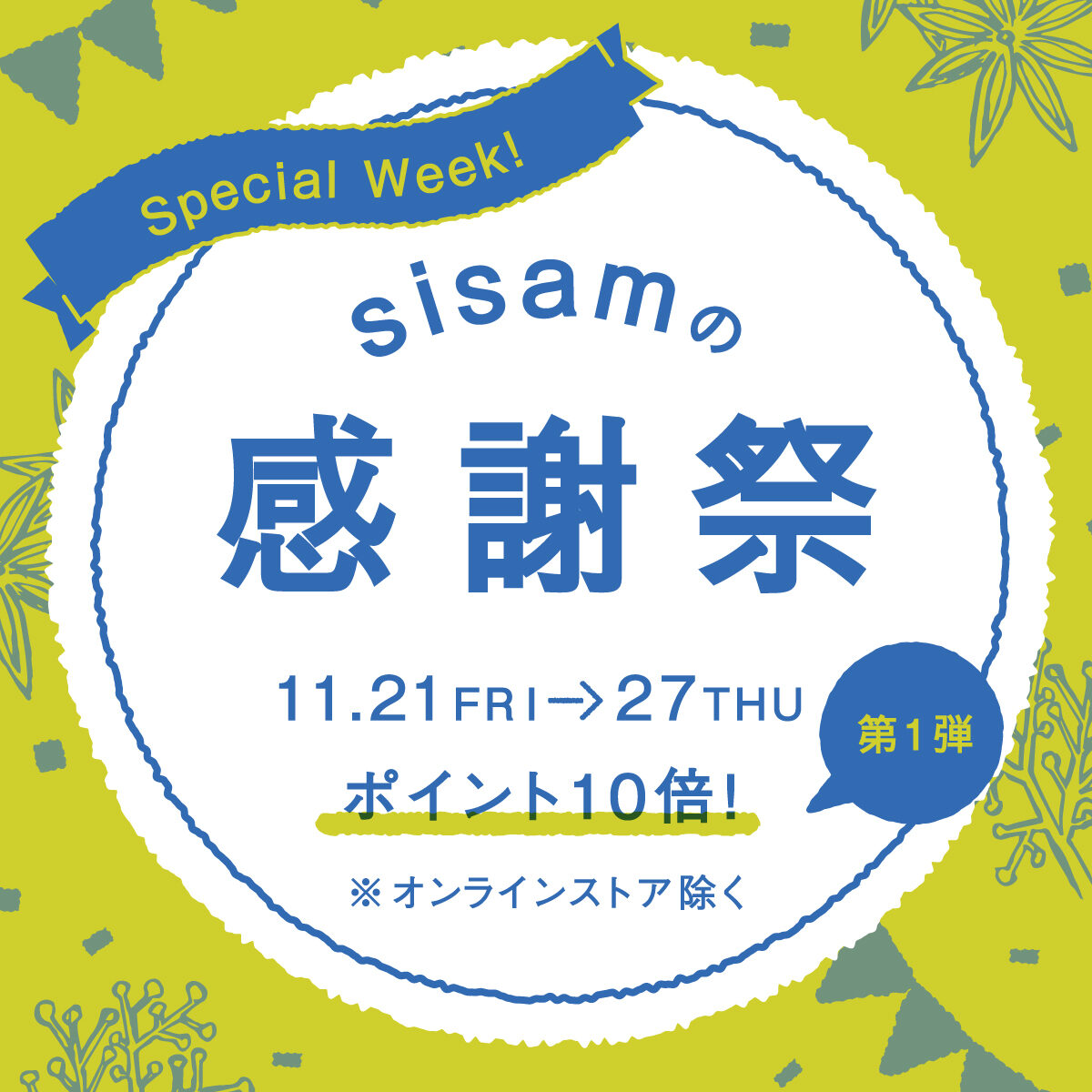 店内の商品すべてsisamポイント10倍のお得な1週間!