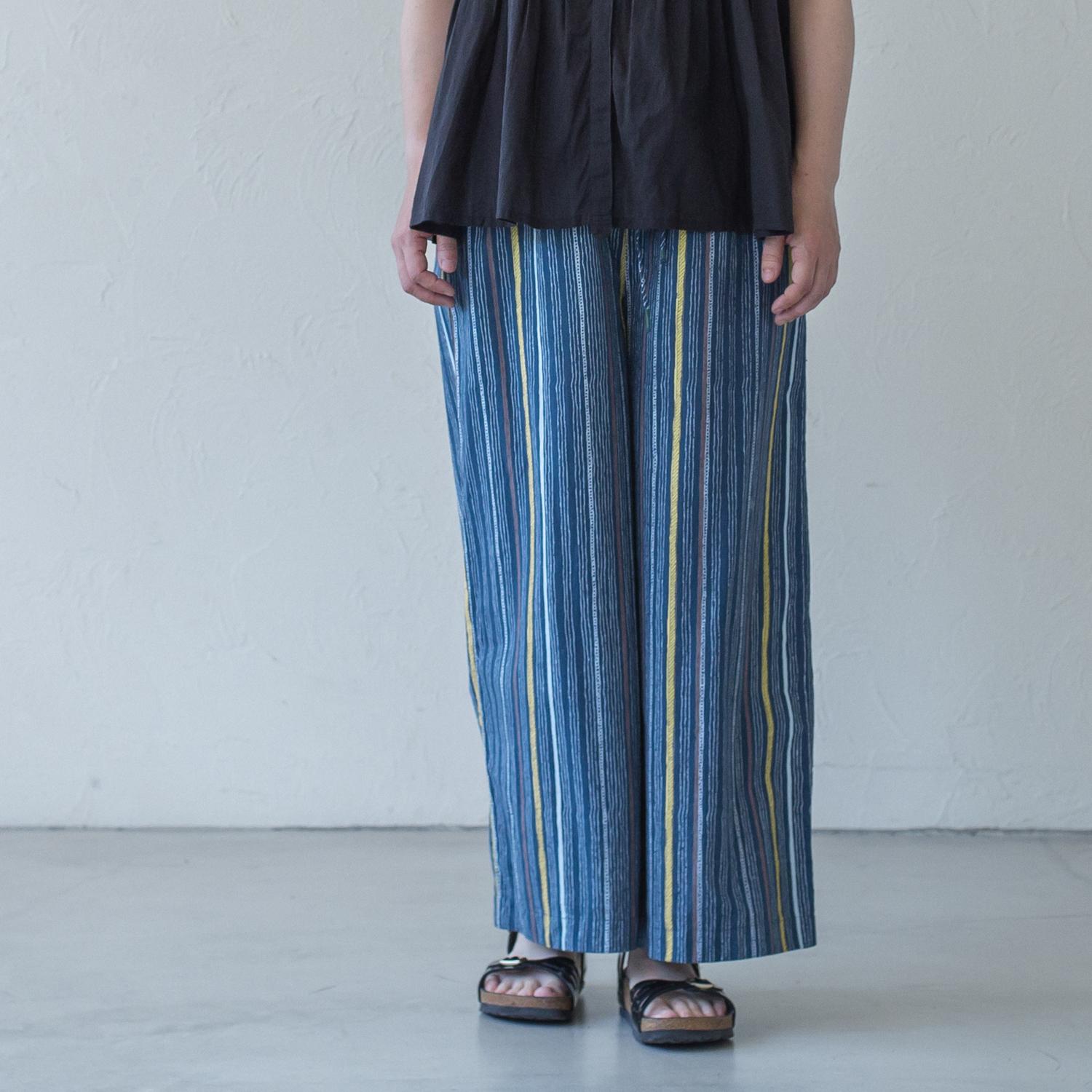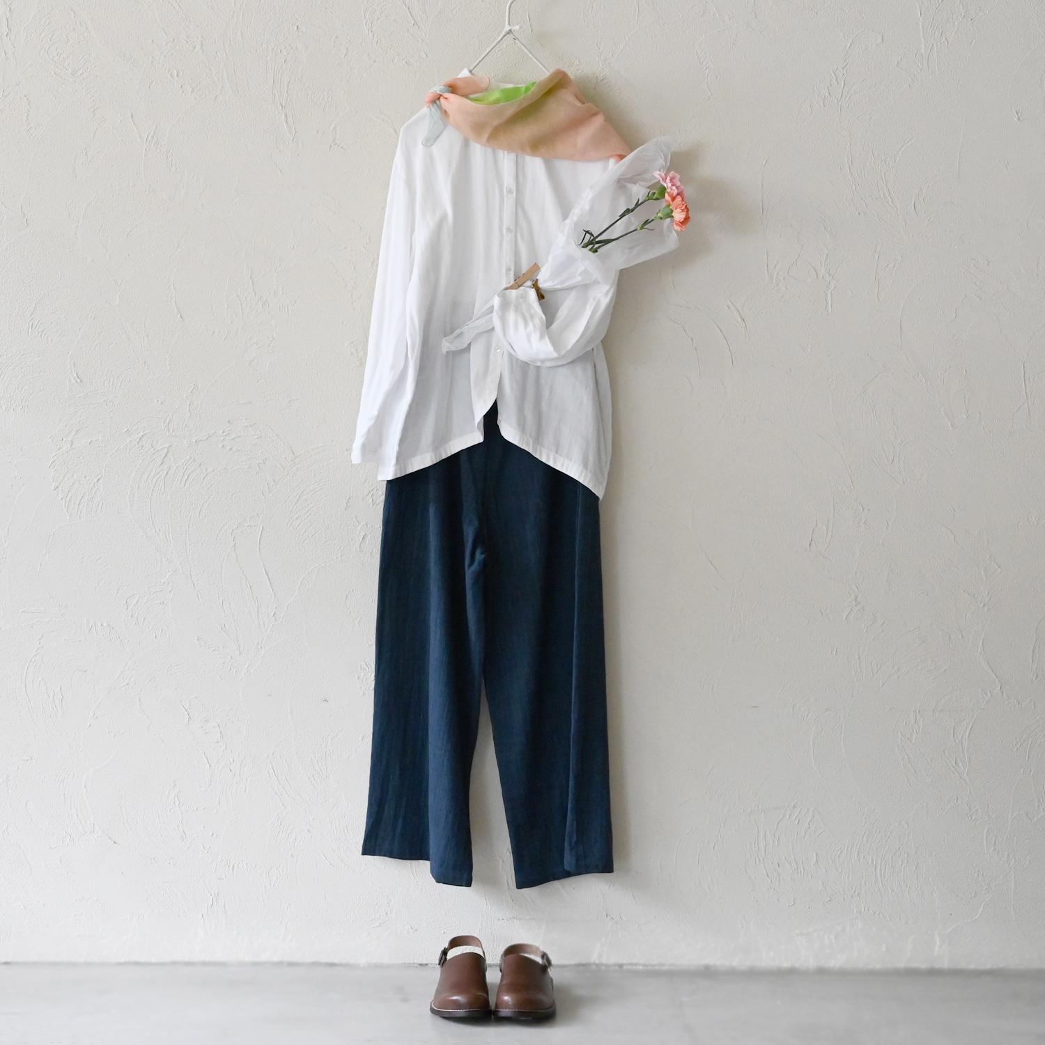 生地の軽さと柔らかさを活かしたたっぷりのギャザー。 立体的なシルエットを作り出し、脚のラインをきれいに見せてくれます。 鮮やかな発色で、シンプルなTシャツと合わせるだけでも、夏のコーディネートを格上げしてくれる嬉しい一枚です。