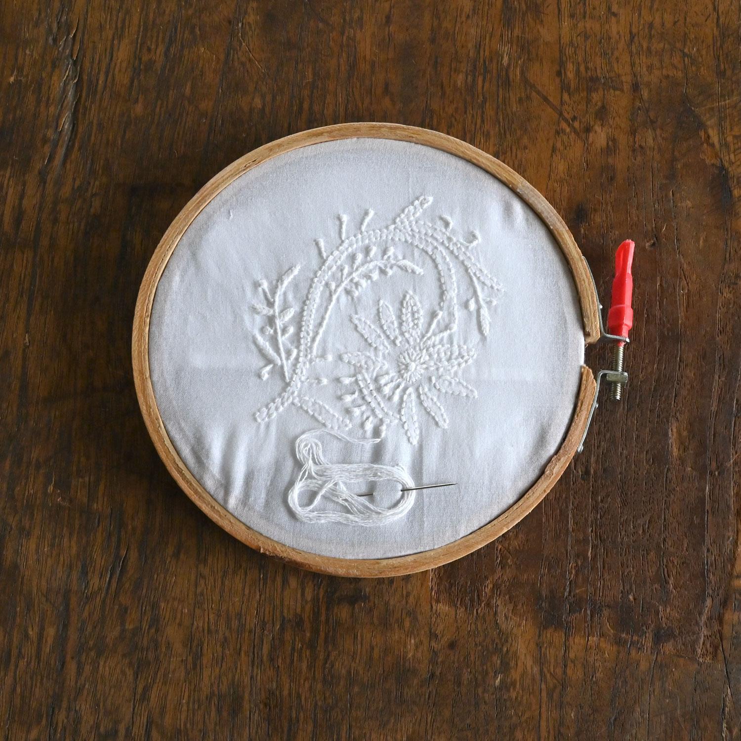 インドのNGO団体Kalatmakがつくる、400年の歴史を持つチカン刺しゅう。 手刺しゅうをしているところをイメージできる刺繍枠です。 お店のディスプレイにしていただくと、RoyalHeritageシリーズのご販売の際に、お客様にもより愛着を持って頂けます。