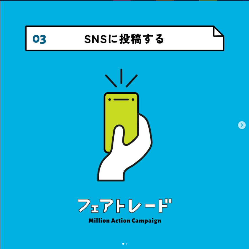 お店の投稿にフェアトレードアイテムが映っている時は、せっかくならぜひ!お願いいたします^^ お買いものしてくださったお客様にもミリオンアクションキャンペーンのご紹介を頂けますと幸いです。