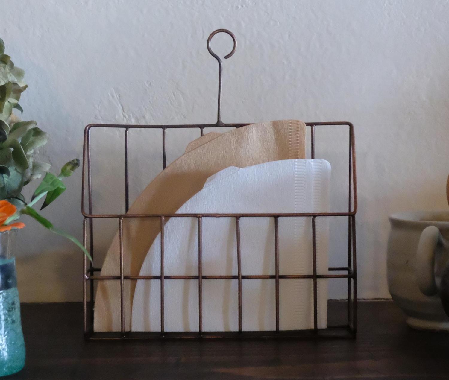 ワイヤーワークのアンティークシルバー仕上げの小さなラック。
