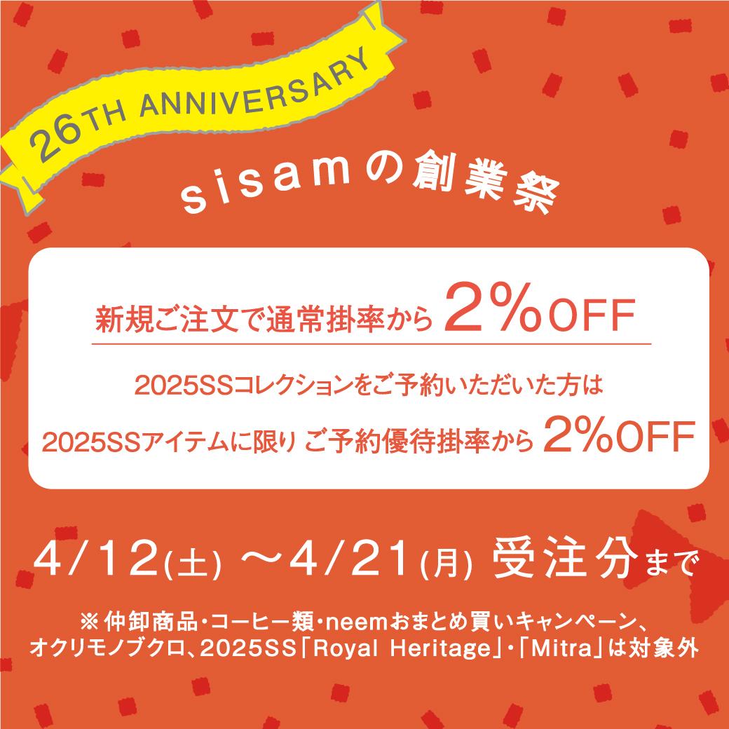 1.【4/21(月)ご注文分まで】sisamの創業祭 開催中!