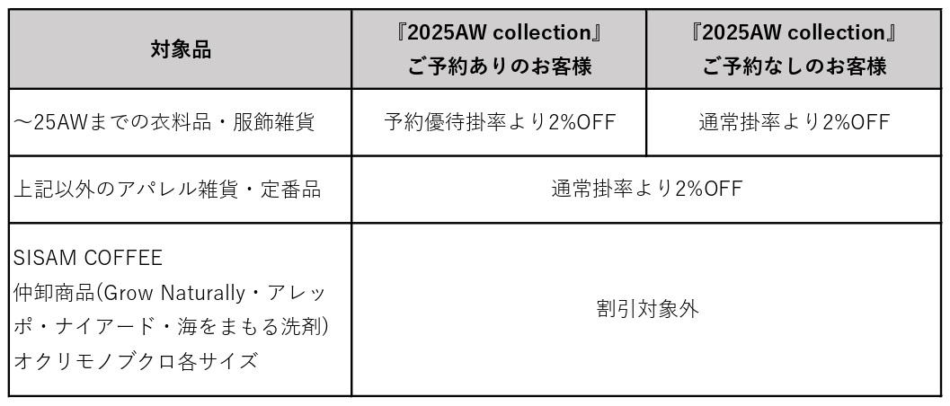 ※ 2025AWご予約注文をいただいたお取引先様は、2025AW以前の衣料品、服飾雑貨も