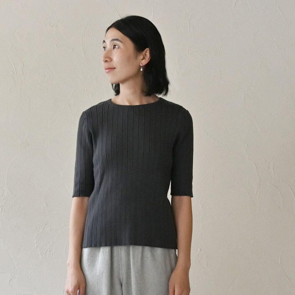 そんな要望に応えるべく、体に優しくフィットする五分袖トップスが登場です。